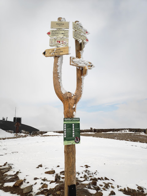 planowaliśmy zakończyć przygodę z Sudetami -najwyższym szczytem, czyli Śnieżką. Już z samego rana zaskoczył nas… śnieg.